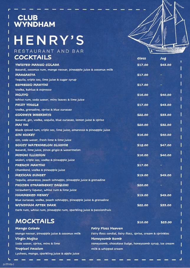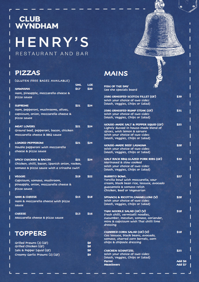 The menu also features creative specials, including the Arancini, well-loved for its flavor and presentation. For steak enthusiasts, Fridays herald the delicious 250g Rump and Scotch Steaks, perfect for unwinding at the weekend. With a warm atmosphere, friendly staff, and an extensive drink selection, Henry's ensures a satisfying dining experience. Whether indoors or by the poolside, it’s a place where the food is comfort-oriented and the service attentive. Be sure to reserve your table; this spot is a local favorite!